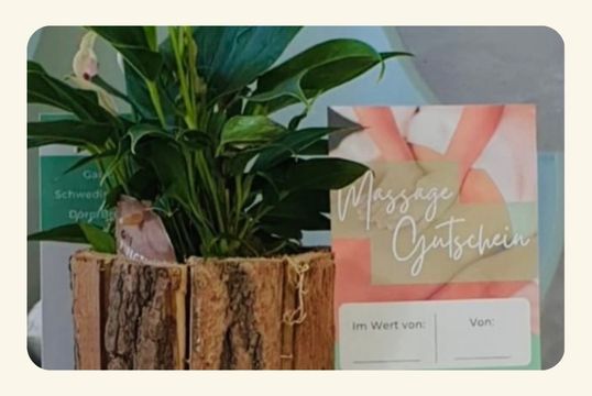 Mit einem Massagen-Gutschein könnt ihr, egal zu welchem Anlass, euren Liebsten eine Freude bereiten. Hierbei handelt es sich um einen Wertgutschein, der auf alle Dienstleistungen oder Produkte anwendbar ist. Bei Interesse melde dich gern bei mir.
